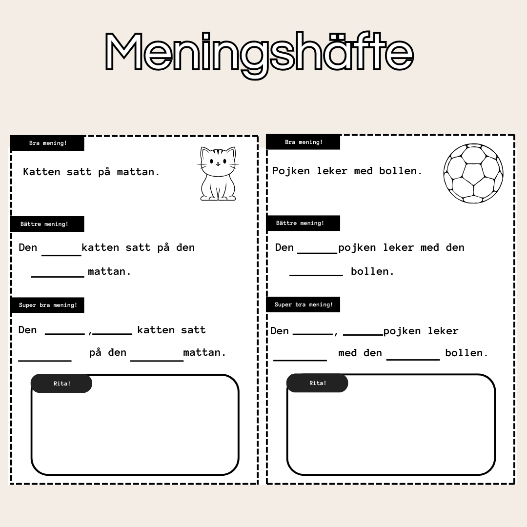 Ett arbetshäfte på 9 sidor där eleverna får träna på att utveckla sitt skrivande genom att beskriva hur objekt eller föremål kan se ut/vara i meningar.