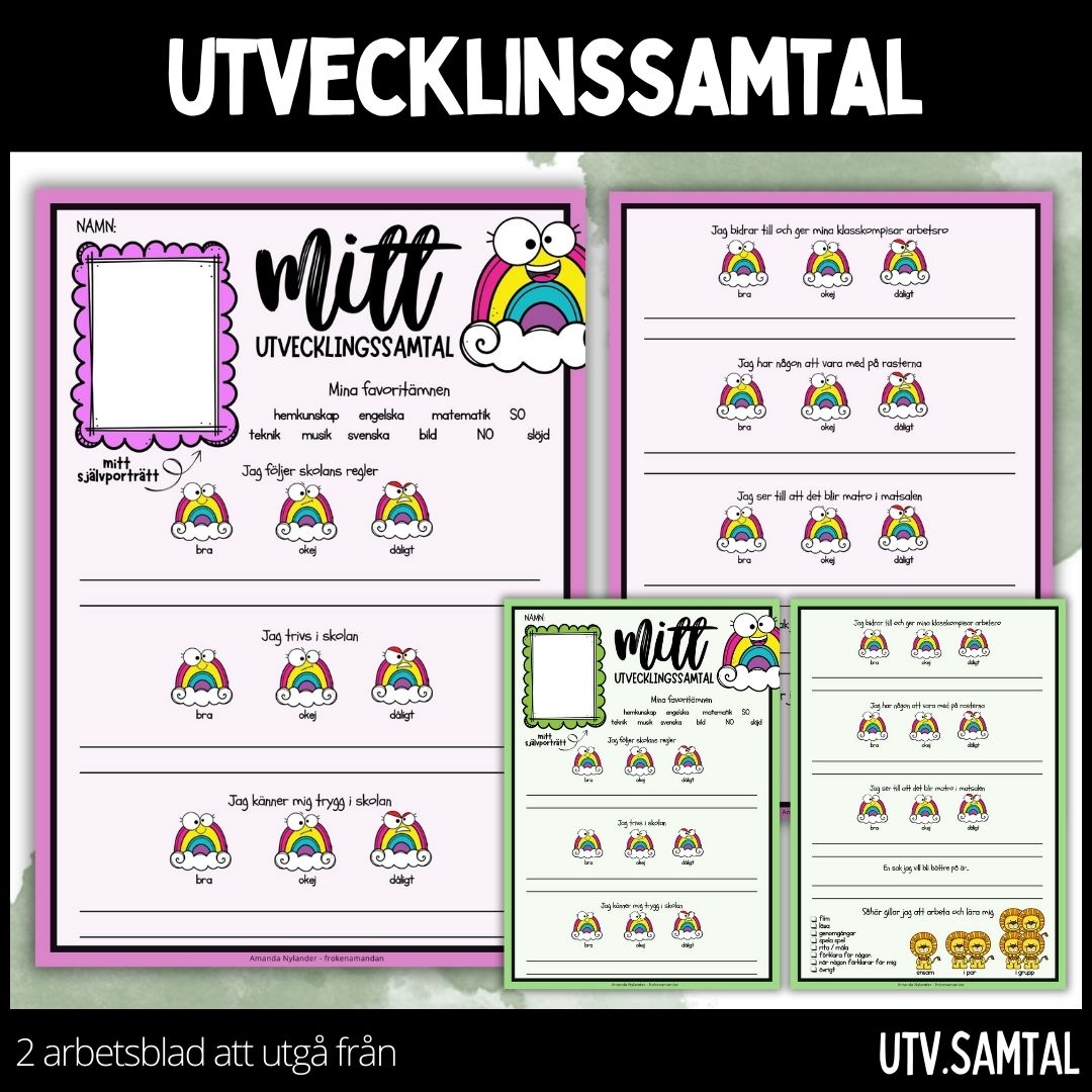Arbetsblad med frågor att utgå från under utvecklingssamtal.
