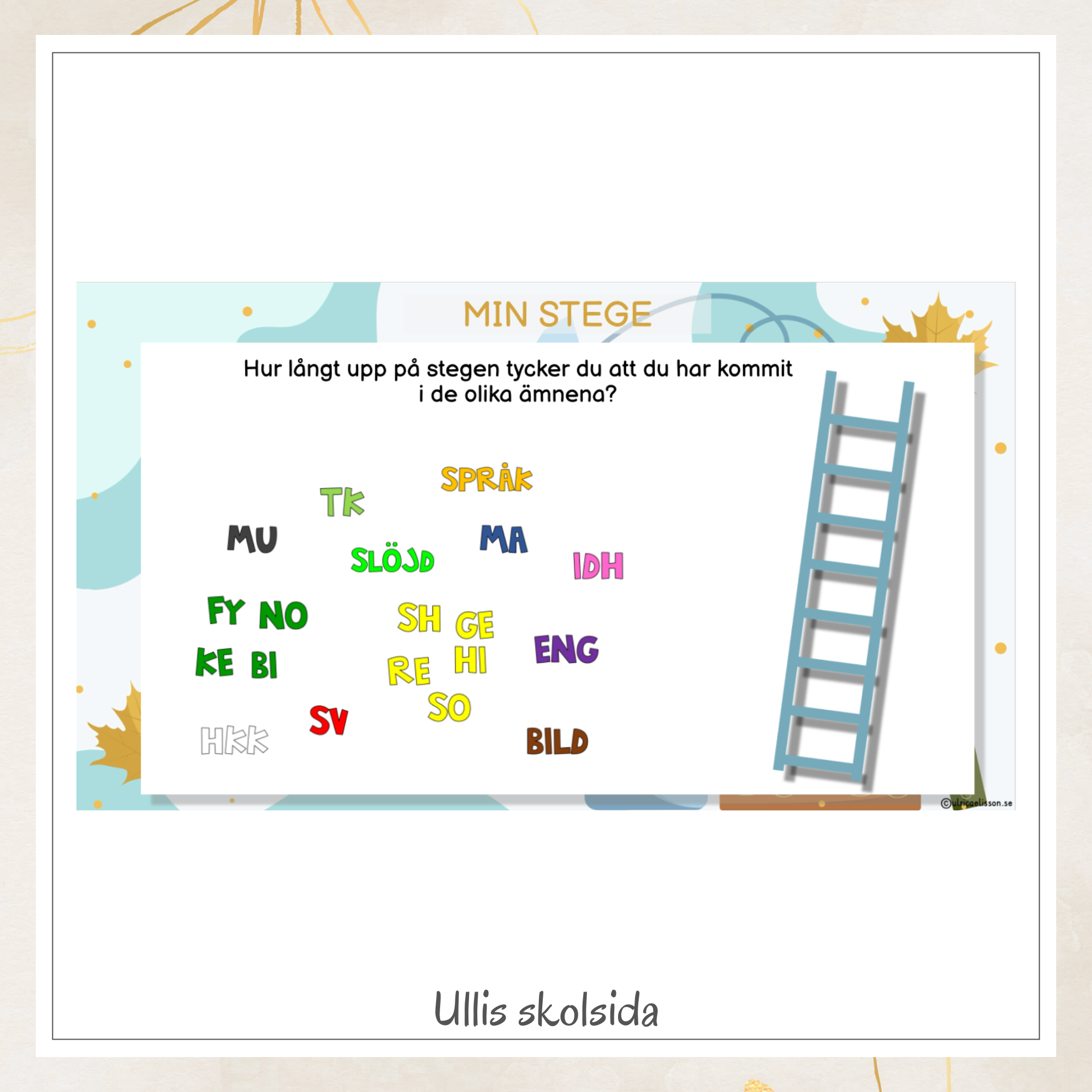 Redigerbar Google Presentation som eleverna använder vid sitt utvecklingssamtal.