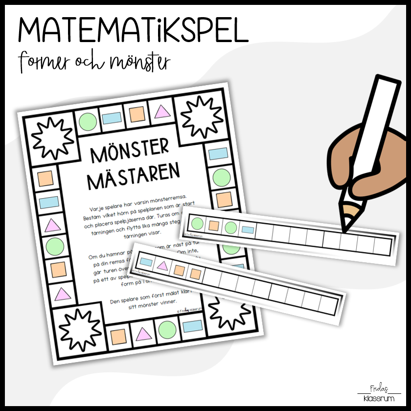 Materialet innehåller spelplan, 4st färdiga spelremsor med mönster, tomma spelremsor för att själv fylla i mönster.