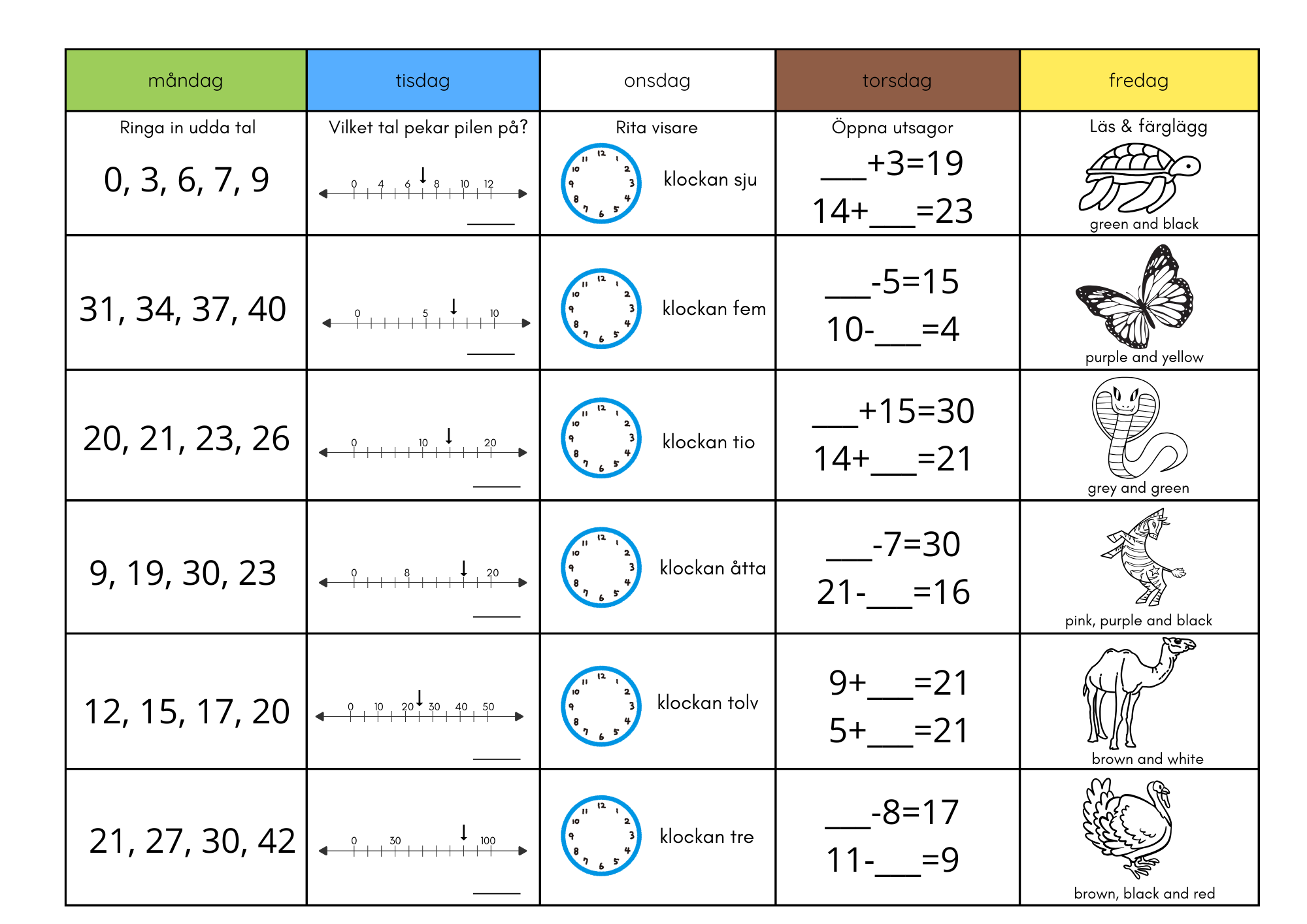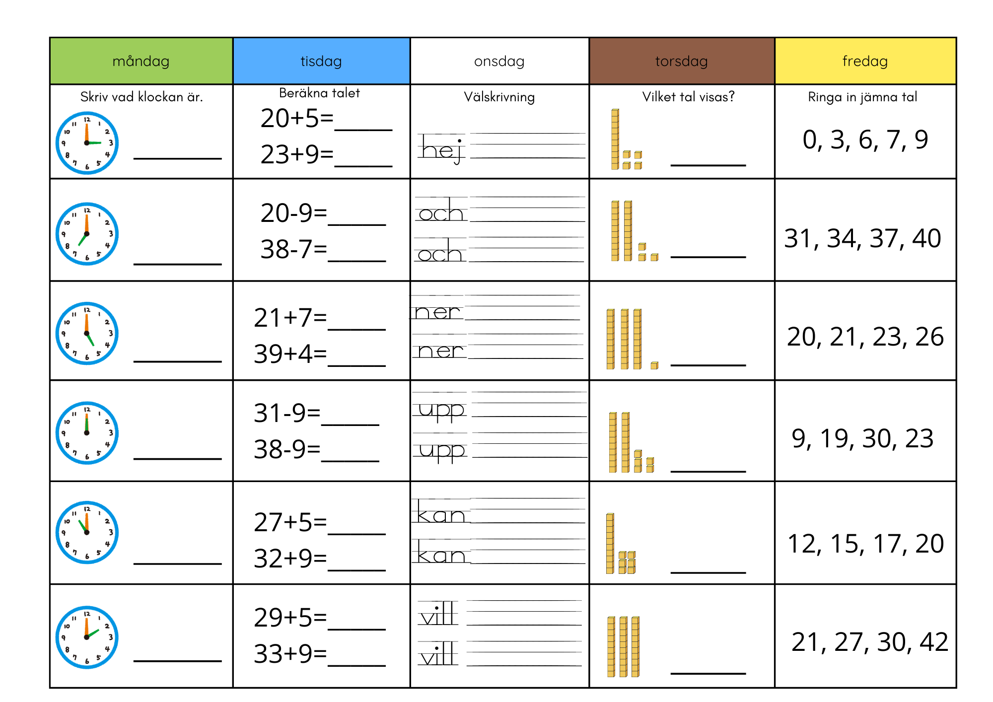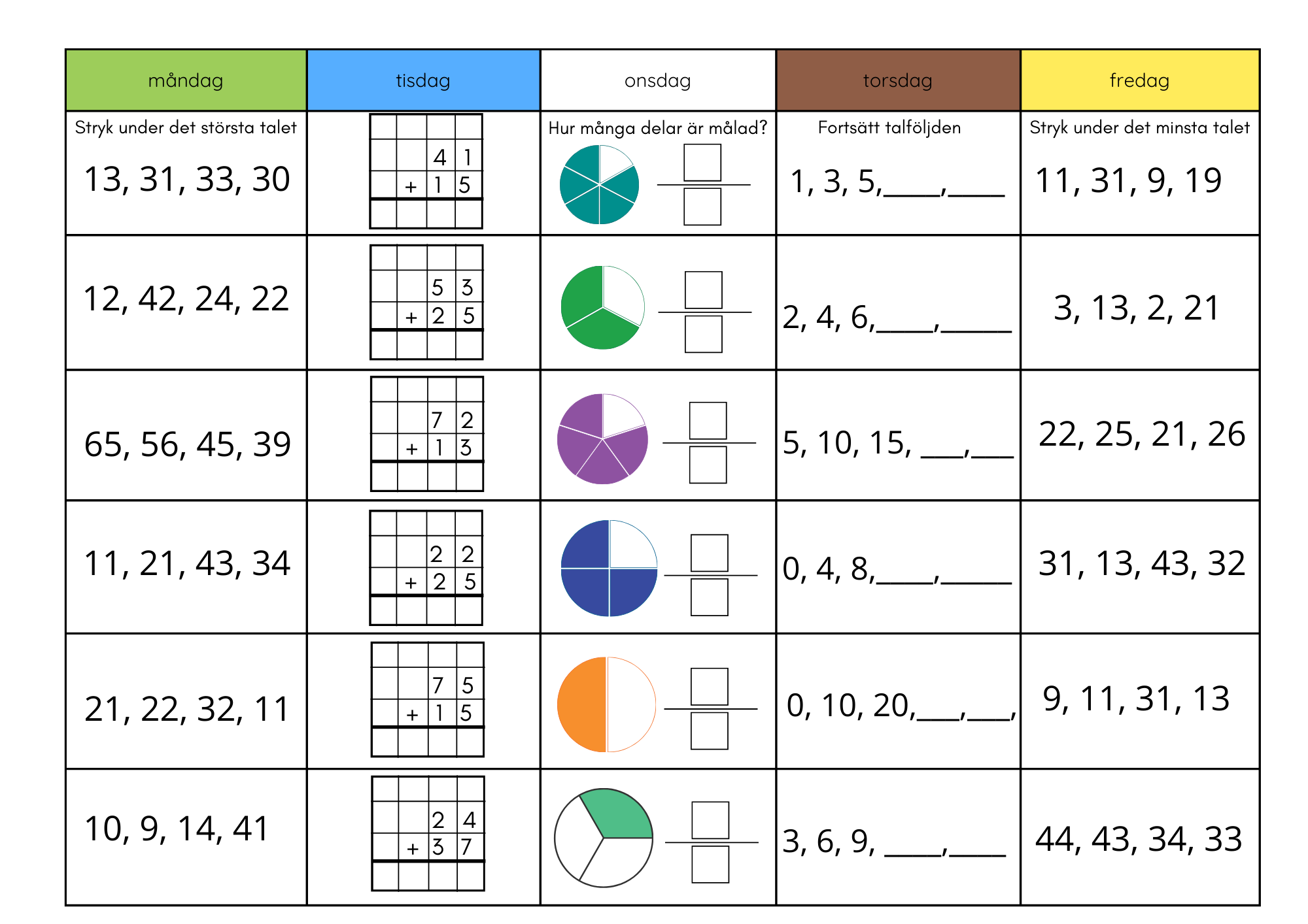 Morgonuppgifter för 6 veckor (blandade uppgifter)