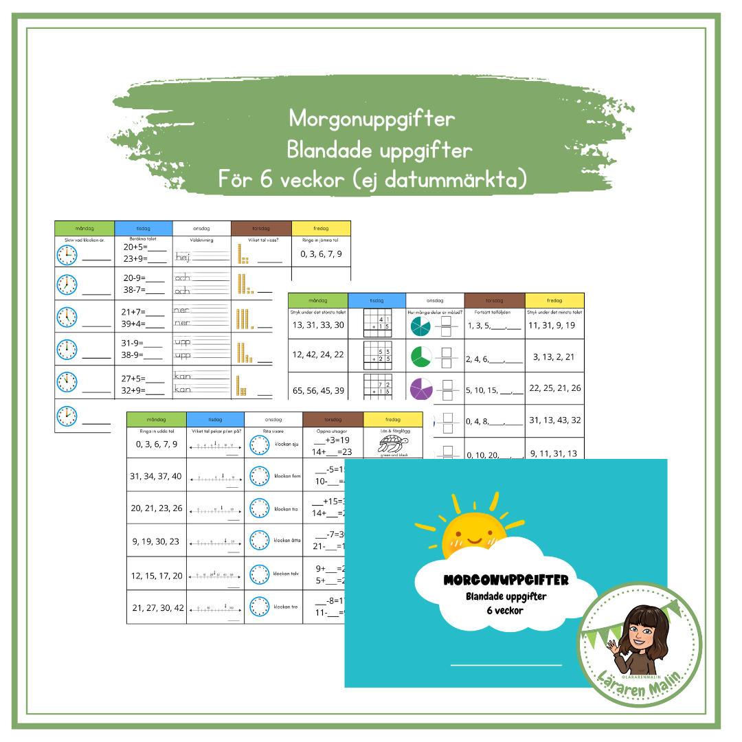 Detta ingår i Morgonuppgifter för 6 veckor (blandade uppgifter)