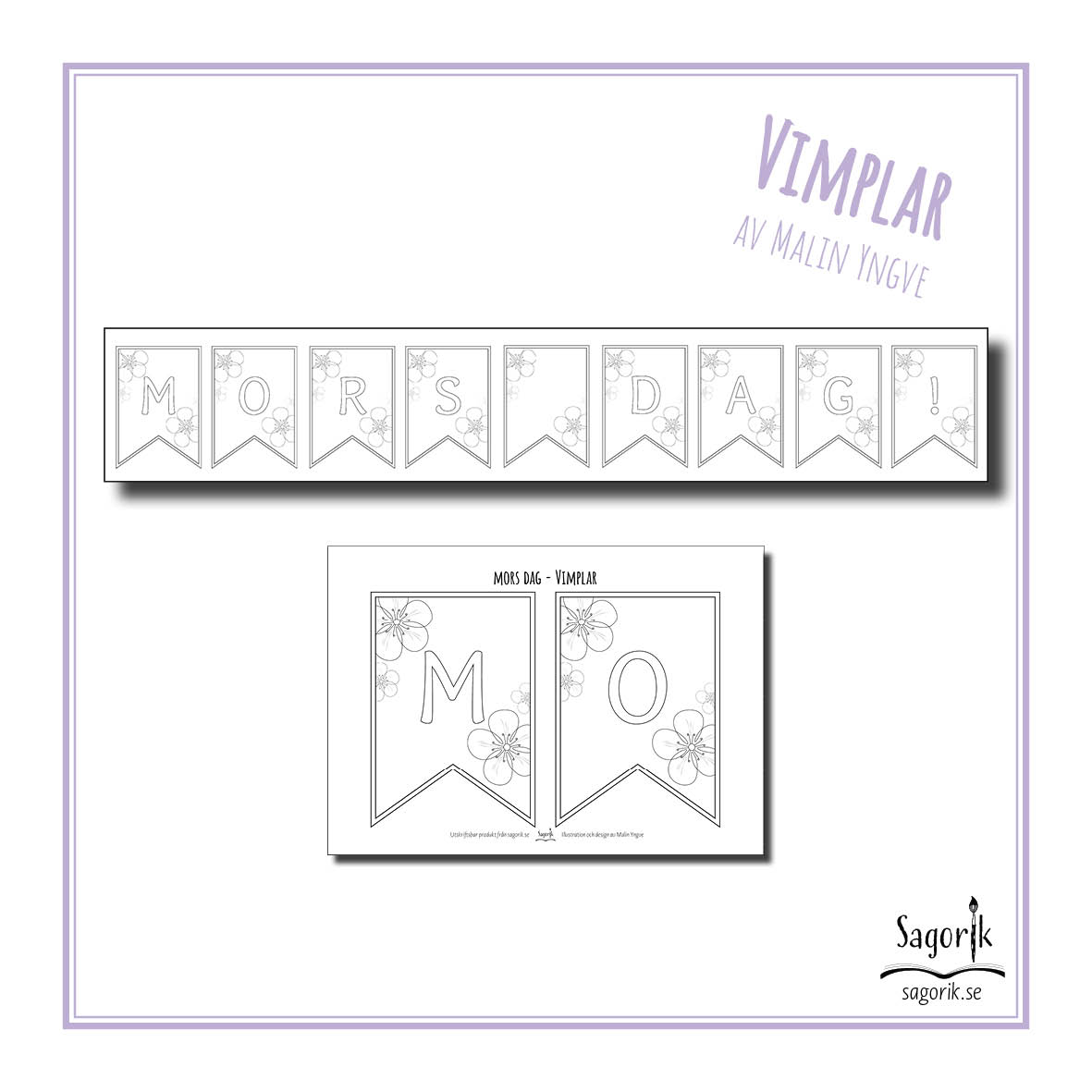 I PDF-en medföljer även en sida med vimplar utan förtryckta bokstäver, så att barnen/eleverna själva kan skriva egna bokstäver. Varför inte namnet på mamma?