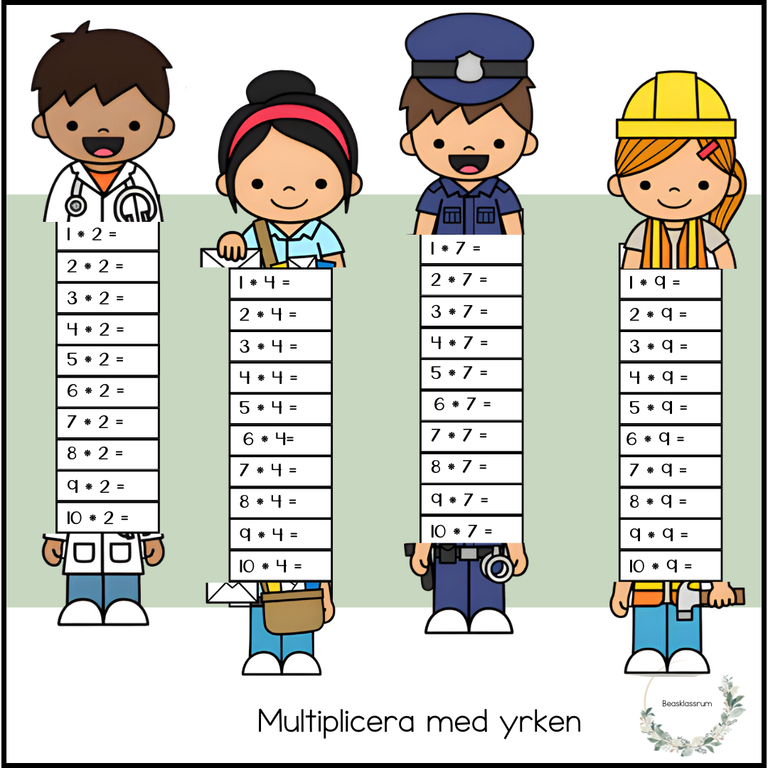 Varje tabell motsvarar ett yrke så när eleverna har gjort alla tabellerna har de en uppsättning yrken.