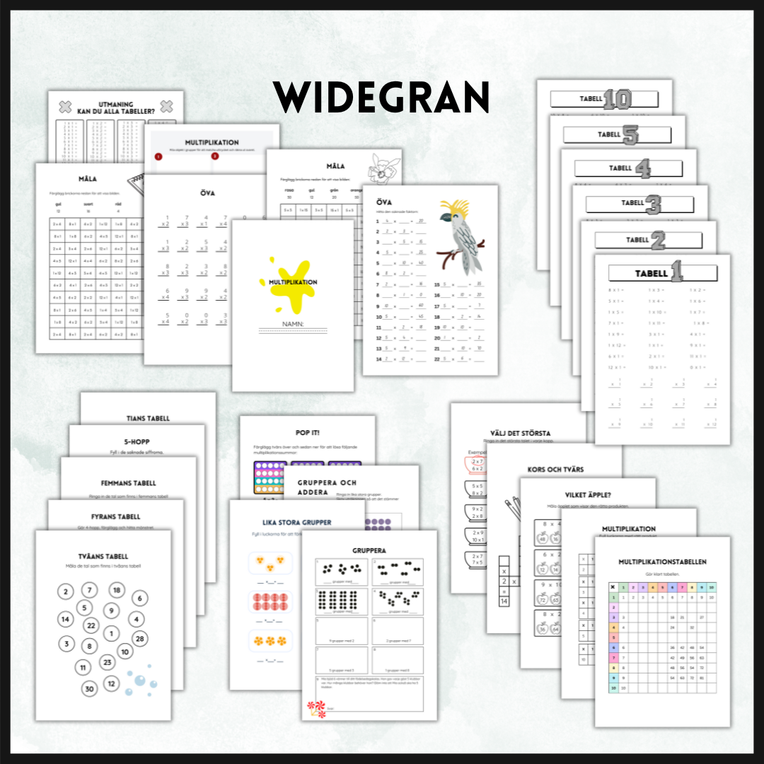 Arbetshäfte med multiplikationstabellen 1,2,3,4,5 och 10.