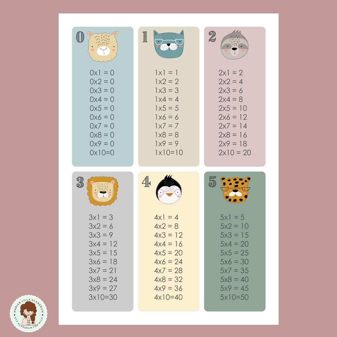 Lär dig multipikationstabellen med hjälp av dessa fina tabellkort.