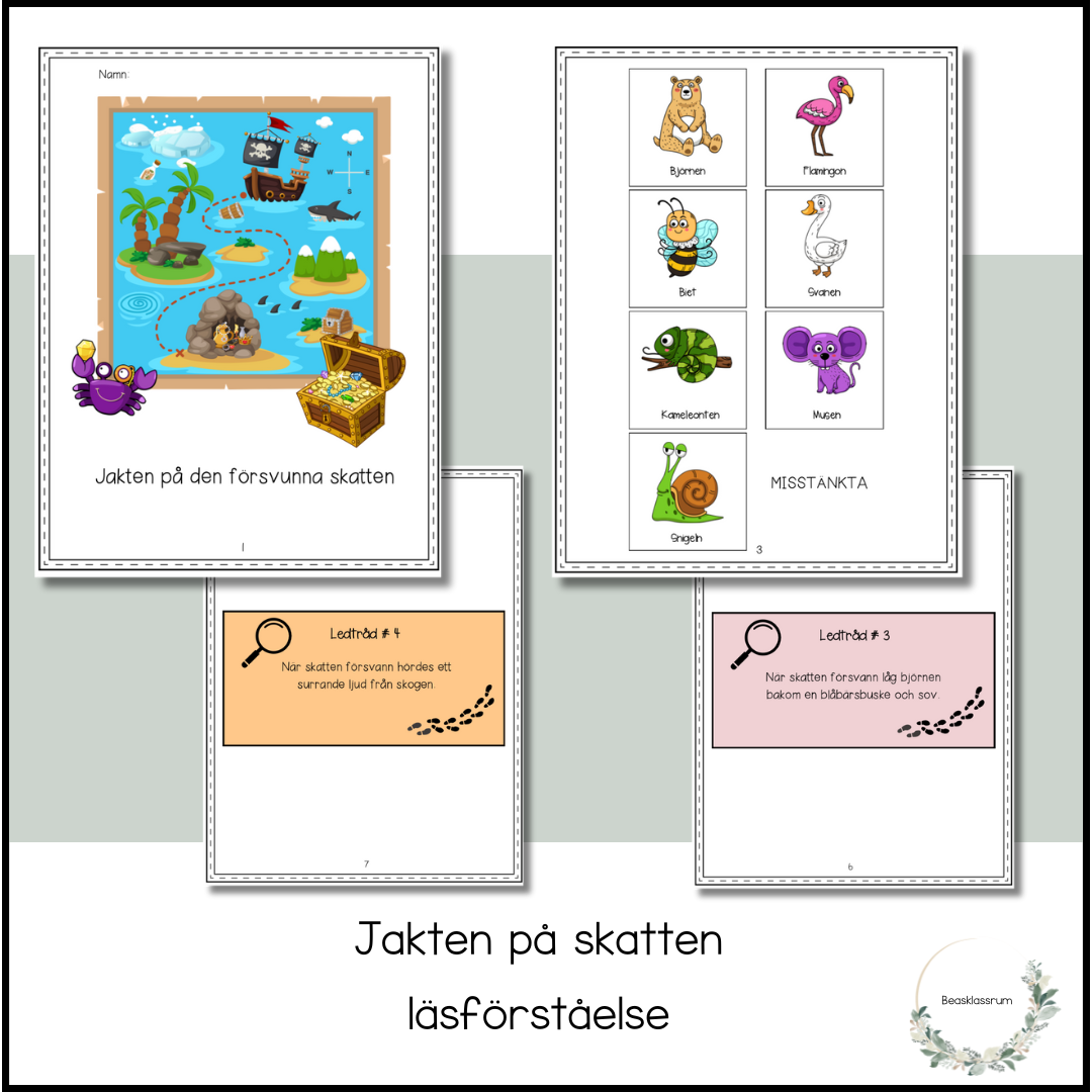 Med hjälp av ledtrådar ska eleven försöka utesluta vilka som inte kan ha begått handlingen och slutligen klura ut vem av de sju misstänkta som har stulit krabbans skattkista.