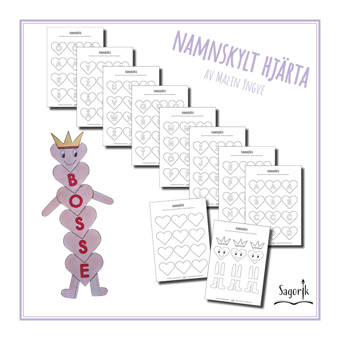 Det medföljer både hjärtan med bokstäver och hjärtan utan, så att du kan skriva egna.