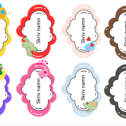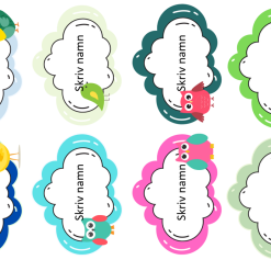 Redigeringsbara namnskyltar i form av moln med små fåglar. Kommer som en powerpoint så du kan skriva i namn eller föremål på datorn. Vill du hellre skriva för hand är det bar att skriva ut. Mått ca 6,5 x 4,5 cm.
