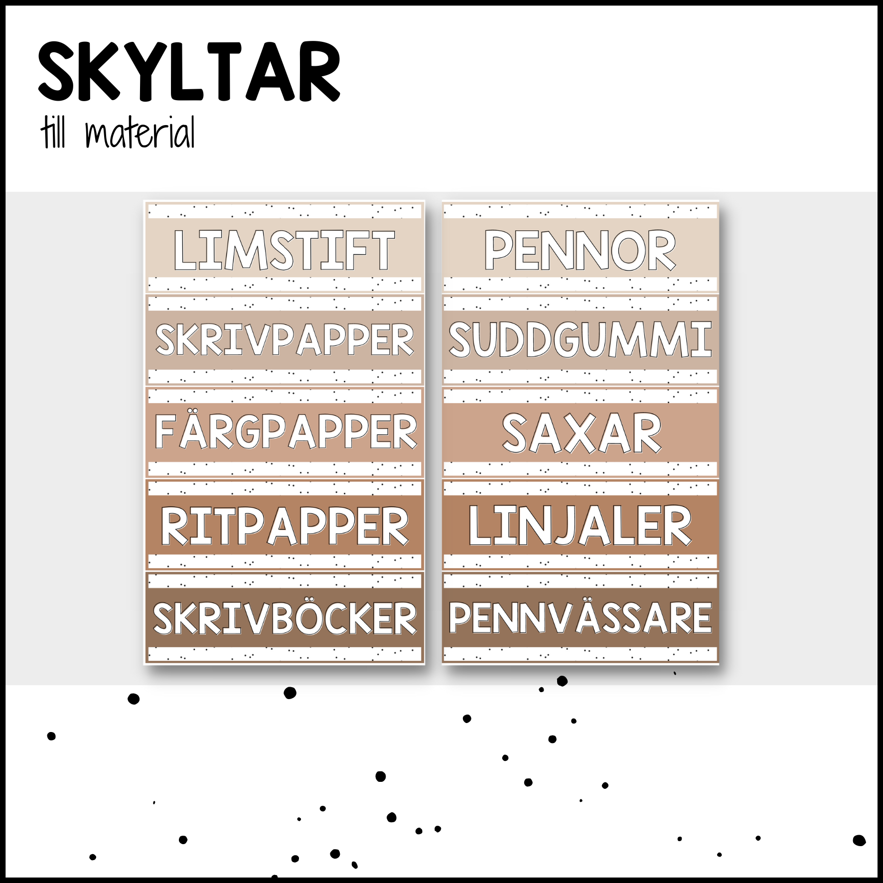 8 skyltar till diverse material i tema NUDE. Saknar du något? Skicka ett meddelande!