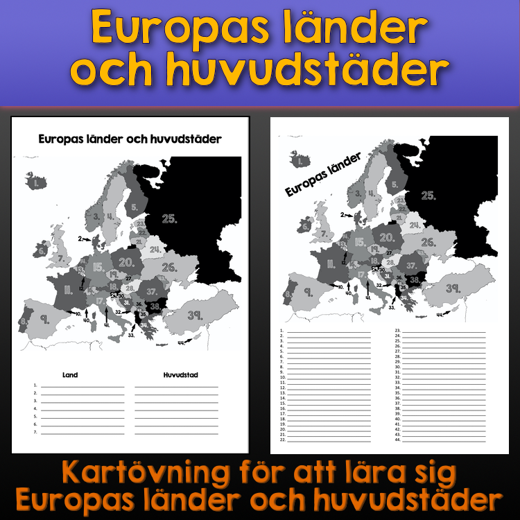 Det här arbetsbladet utmanar eleverna att förbättra sina geografiska kunskaper genom att placera Europas länder och deras huvudstäder på en numrerad karta. Genom denna övning kommer de att stärka sin förståelse för geografiska platser och förbättra sina minnes- och kartläsningsfärdigheter.