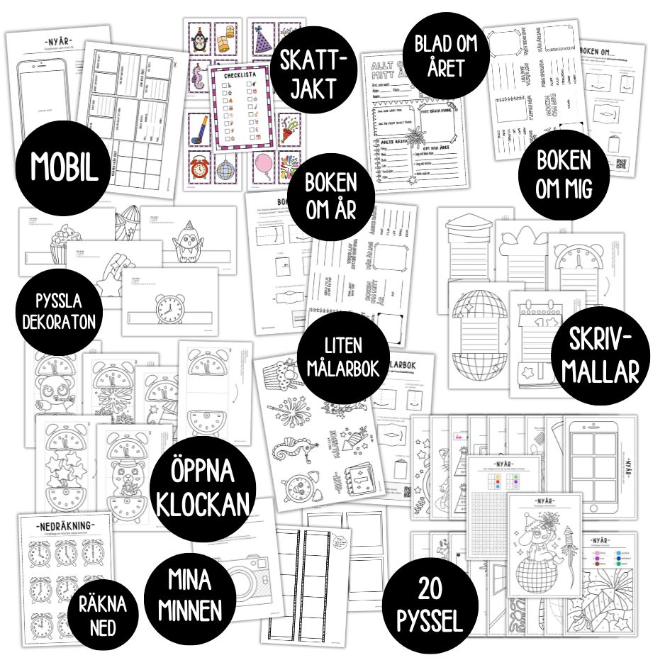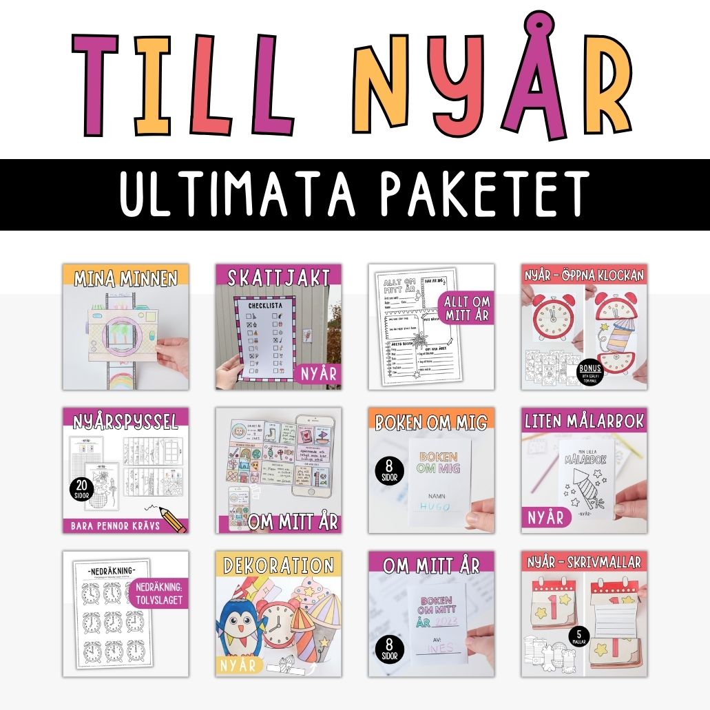 Det ultimata paketet till nyår! Innehåller 12 aktiviteter och pyssel till nyår, du sparar 73%. Färglägg, rita, klura, klipp, klistra och pyssla med barnen inför nyår.