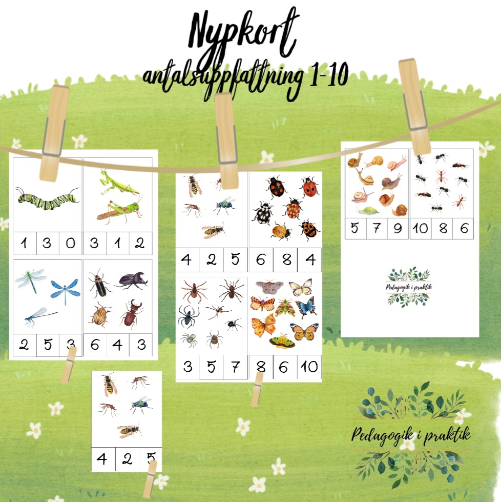 Nypkort 1-10 med olika djur som motiv. Perfekt till stationsarbete eller som vänt-uppgift.