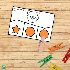 TrÀna geometriska former pÄ ett lekfullt sÀtt! Dessa nypkort med katt-tema gör det enkelt och roligt för eleverna att öva pÄ att kÀnna igen och benÀmna olika former. Perfekta för förskola och lÄgstadiet. Med hjÀlp av klÀdnypor markerar eleverna det rÀtta svaret, vilket gör övningen bÄde taktil och sjÀlvrÀttande. Materialet Àr utformat för att ge variation och stÀrka barnens begreppsförstÄelse inom geometri.