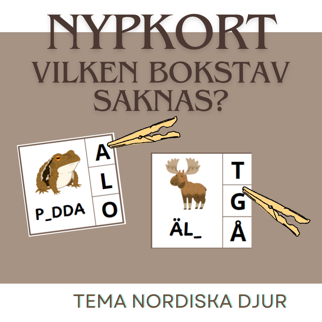 Nypkorten är ett interaktivt och roligt verktyg för elever att öva på att fylla i saknade bokstäver i ord. Varje kort innehåller ett ord där en bokstav har tagits bort, vilket uppmuntrar eleverna att tänka efter och använda sin kunskap om alfabetet och ljuden i språket. Med färgglada bilder och tydliga instruktioner blir lärandet engagerande och stimulerande. Nypkorten är dessutom utmärkta för stationsarbete, vilket gör det möjligt för eleverna att arbeta självständigt eller i små grupper.