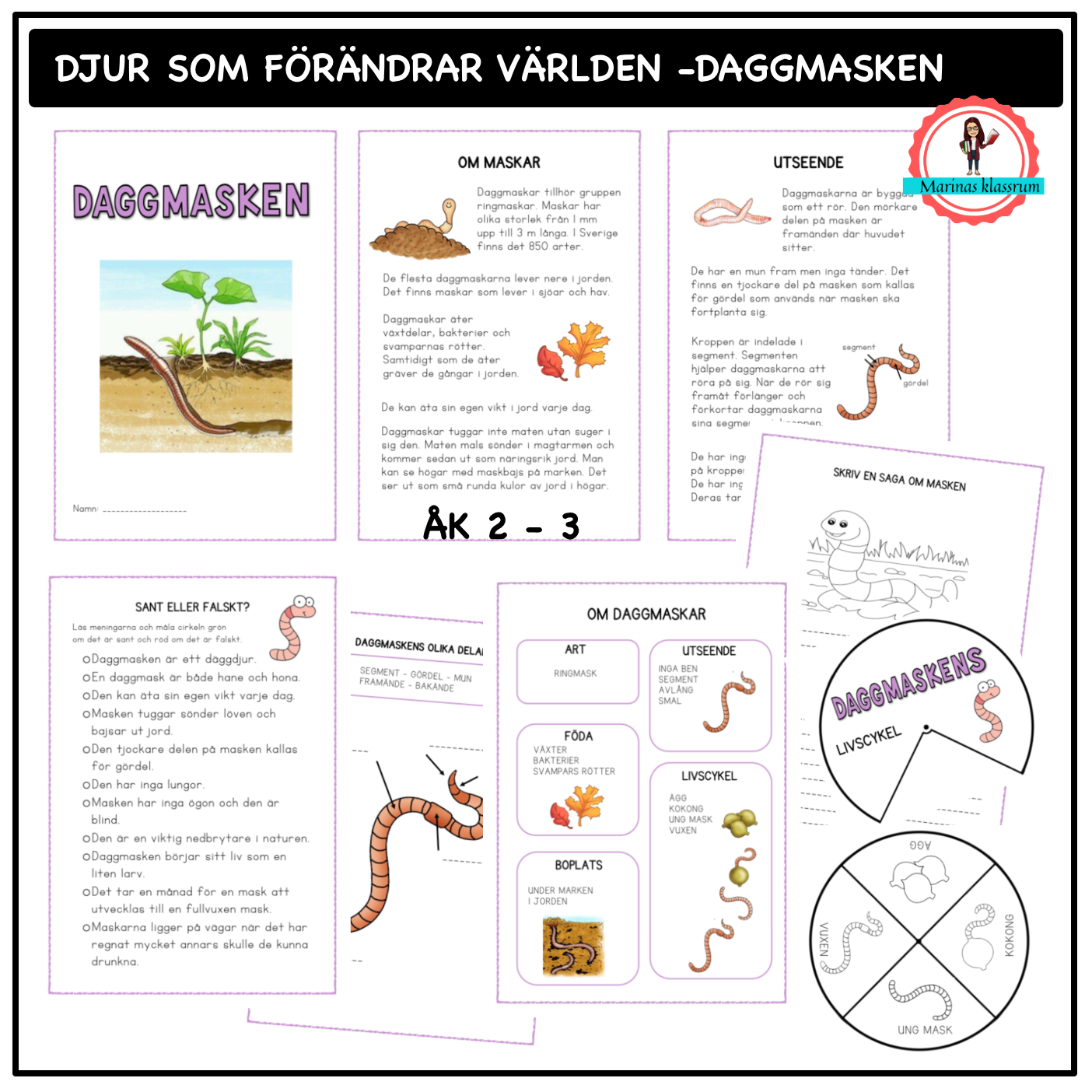 Daggmasken ingår i en serie som jag har skapat om olika djur i Sverige som förändrar världen. Du hittar liknande materiel om nyckelpigan, biet, grodan och myran.
