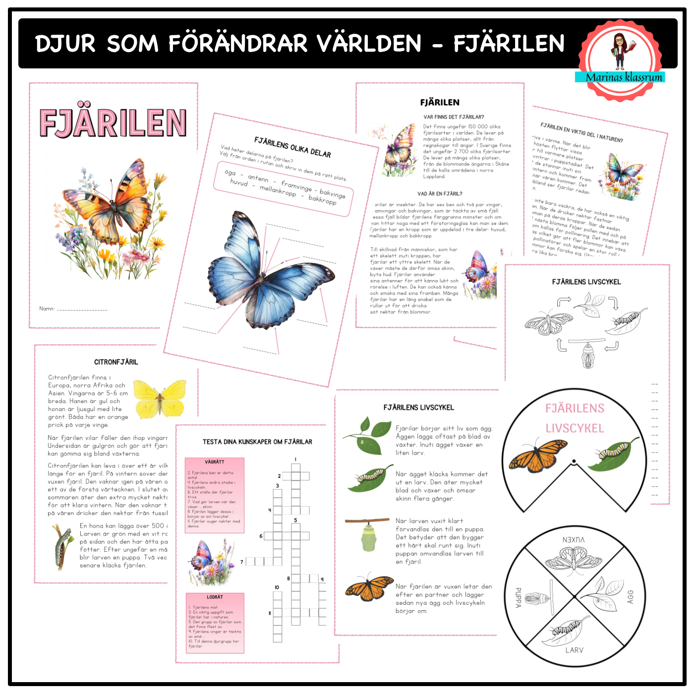 - Det ingår även faktatext och skrivblad om Tistelfjärilen och Citronfjärilen.