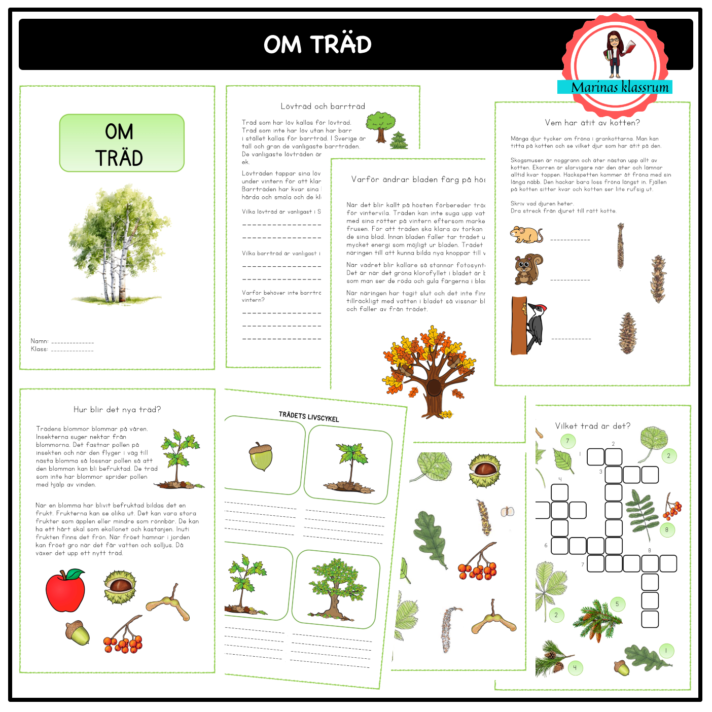 Lär dig om träd med detta material som innehåller både fakta och material så att eleverna kan skapa sin egen bok om träd. ( 22 sidor åk 1-2)