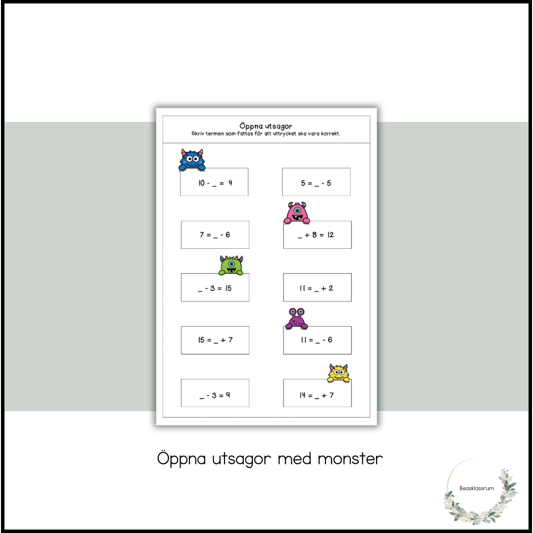 Arbetsblad där eleverna får träna på öppna utsagor.