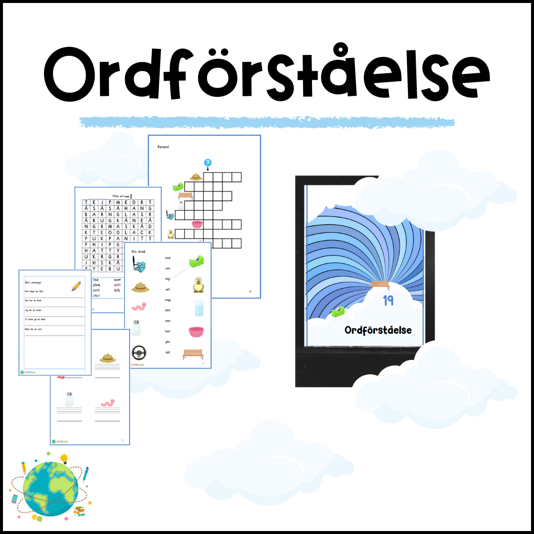 Ordförståelse 19 är en fortsättning på de tidigare häftena. I häftet tränar eleverna på dubbelteckning med 2 konsonanter. Häftet består av korta ord med 4 bokstäver.