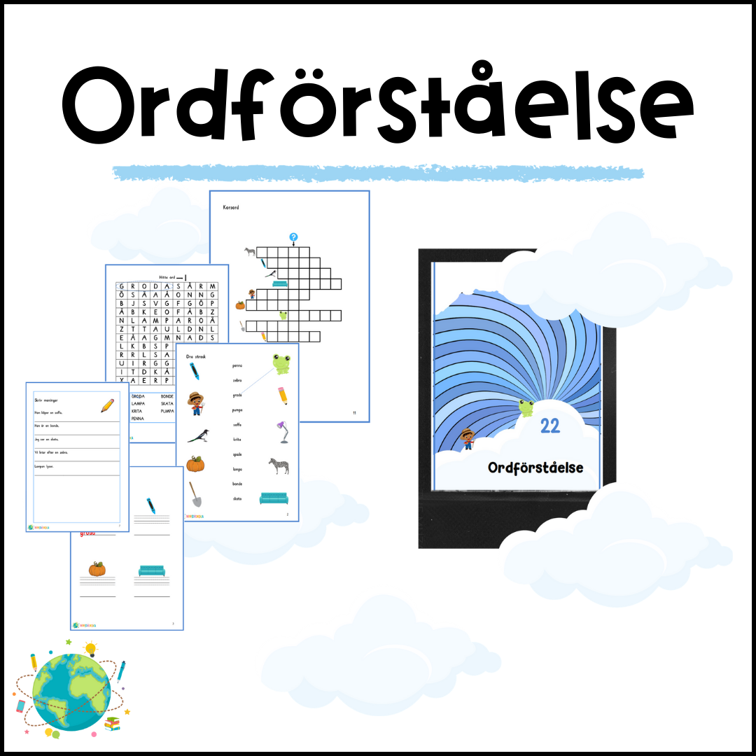 Ordförståelse 22 är en fortsättning på de tidigare häftena. I häftet tränar eleverna på dubbelteckning med 2 konsonanter. Häftet består av korta ord med 5 bokstäver.