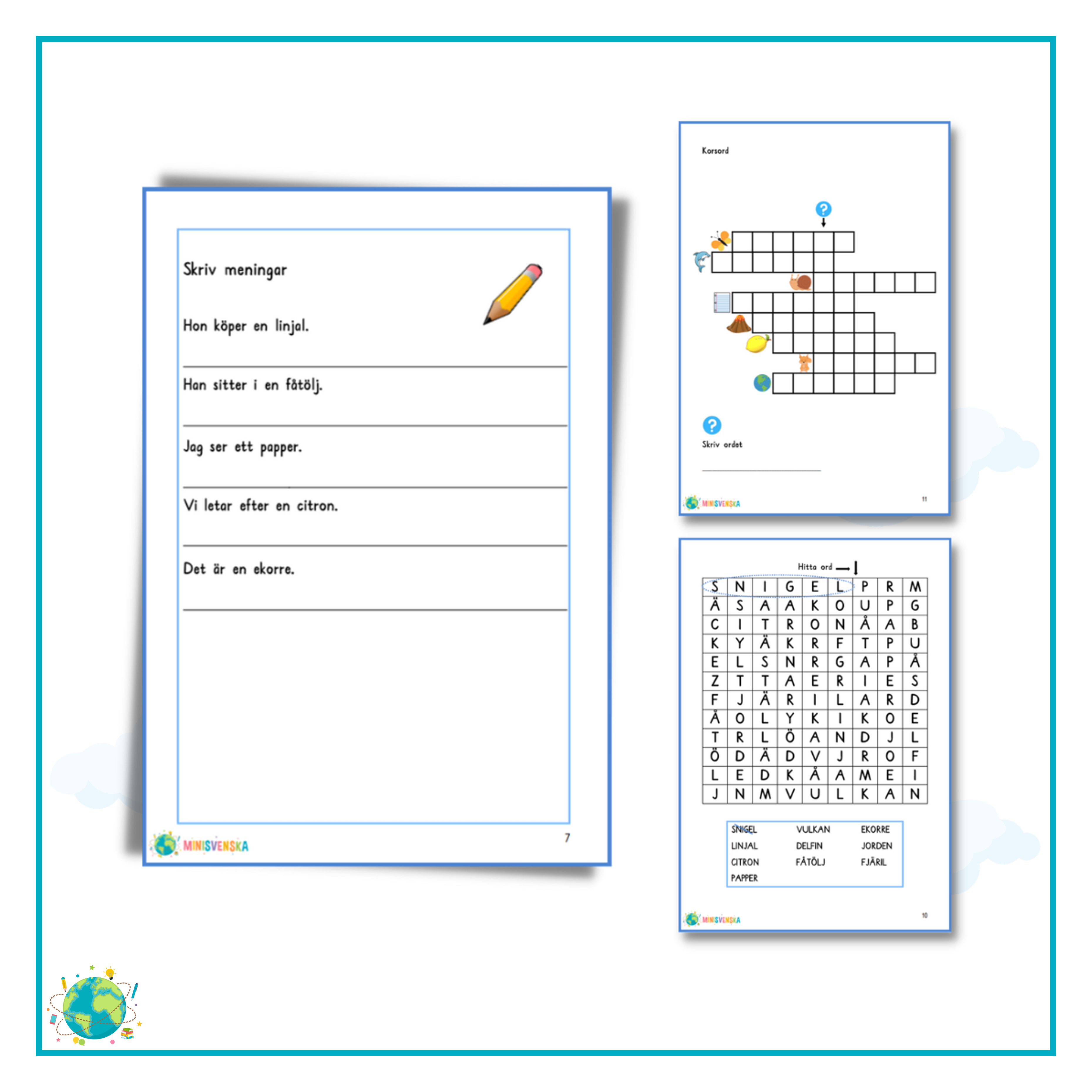 Ordförståelse 25 är en fortsättning på de tidigare häftena. I häftet tränar eleverna på dubbelteckning med 2 konsonanter. Häftet består av ord med 6 bokstäver.