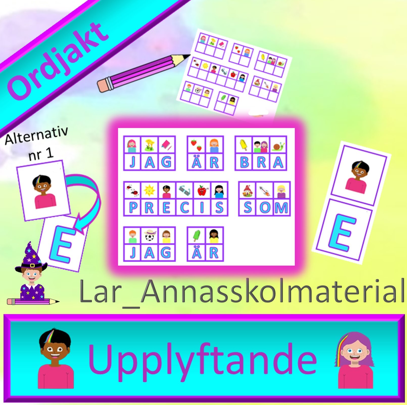Klipp ut och häng upp bild och bokstav. Som ni ser på bilderna finns det 2 alternativ. Antingen med fram- och baksida eller med bilden överst och bokstaven underst. Dela sedan ut en varsin tom bricka med bilder. Eleverna ska därefter skriva in rätt bokstav under rätt bild på sin bricka.