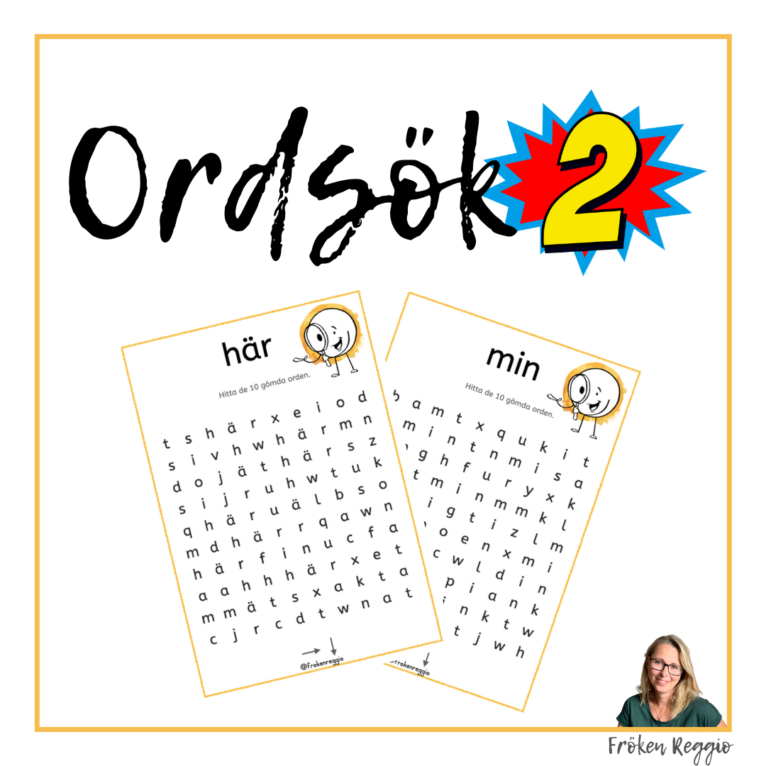 Träna på ordbilden och stavning genom att leta efter orden. Det gömmer sig 10 stycken av samma ord bland bokstäverna. Totalt 20 st vanliga, korta, enstaviga ord: