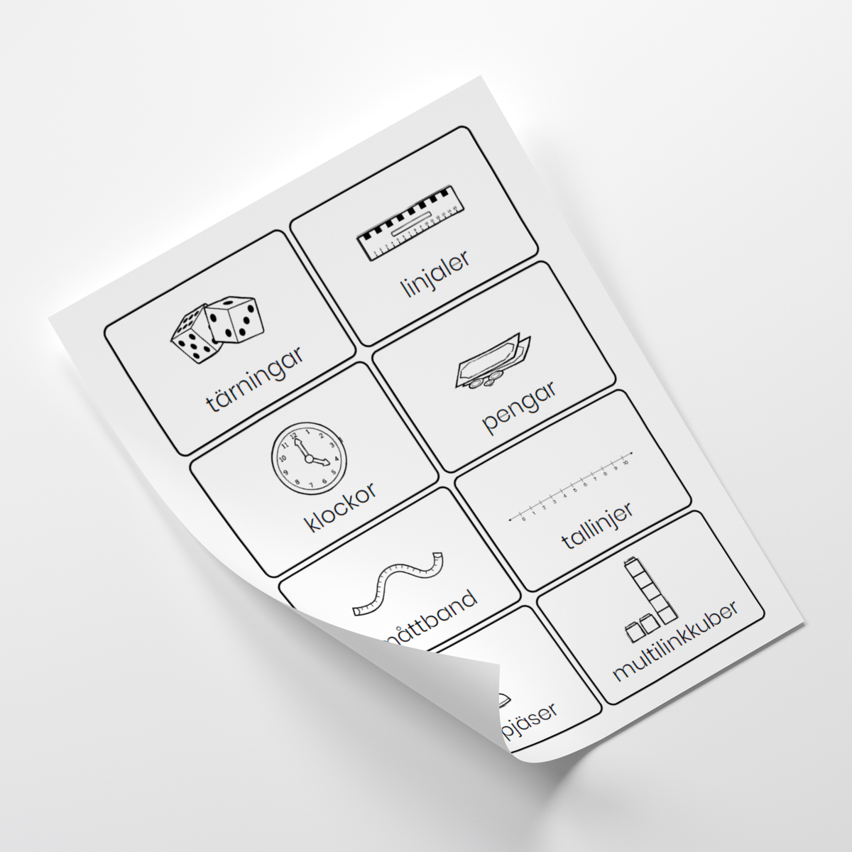 Organiseringsskyltar för skolmiljö. Du kan använda dem i skolan/förskolan/fritids för att märka upp vilket material som finns i lådor och skåp.