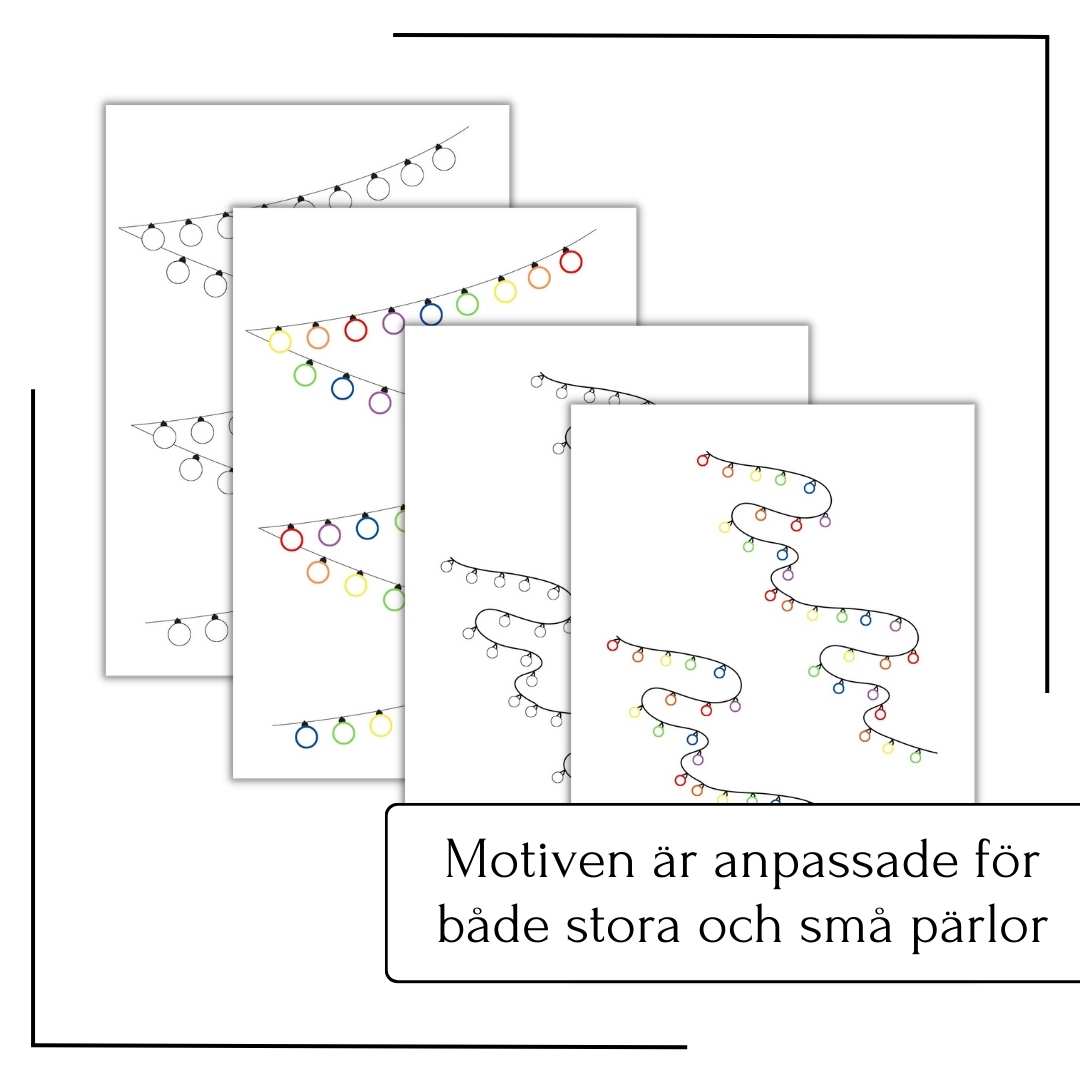 Häftet innehåller hela 15 olika bakgrunder att fylla med pärlor och leklera.
