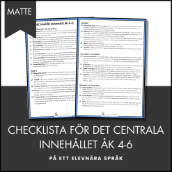 Checklistor över det centrala innehållet i ALLA ÄMNEN för åk 4-6, skrivet på ett elevnära och förenklat språk. Använd som underlag för varje elev vid IUP-samtal eller vid din egen planering av ämnet så inget missas. En framsida ingår om du vill sätta ihop checklistorna till ett häfte som följer varje elev under lågstadiet.
