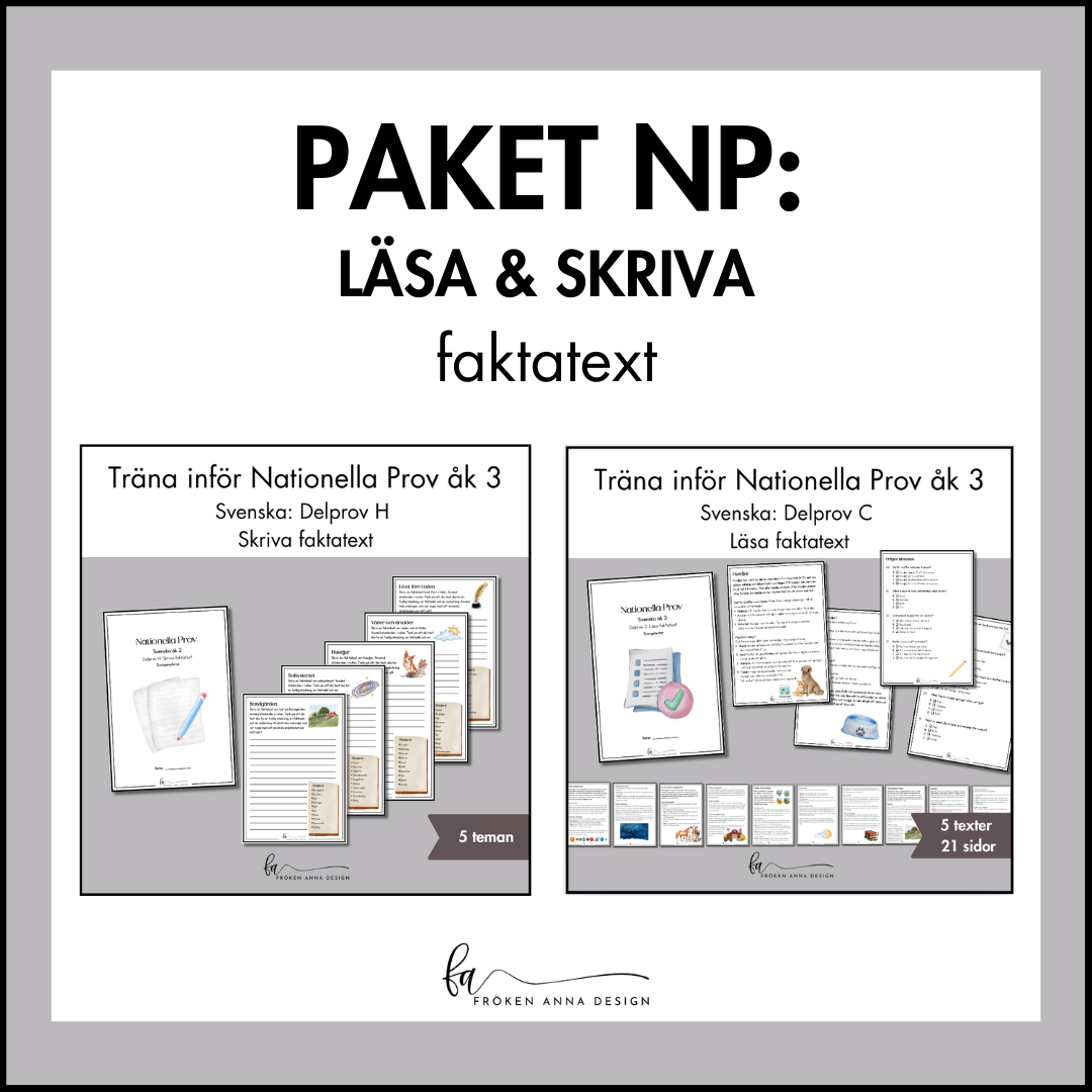 Förbered dina elever inför nationella provet i svenska med detta kompletta paket för åk 3. Perfekt för att träna viktiga färdigheter som läsförståelse, informationssökning och faktaskrivande.