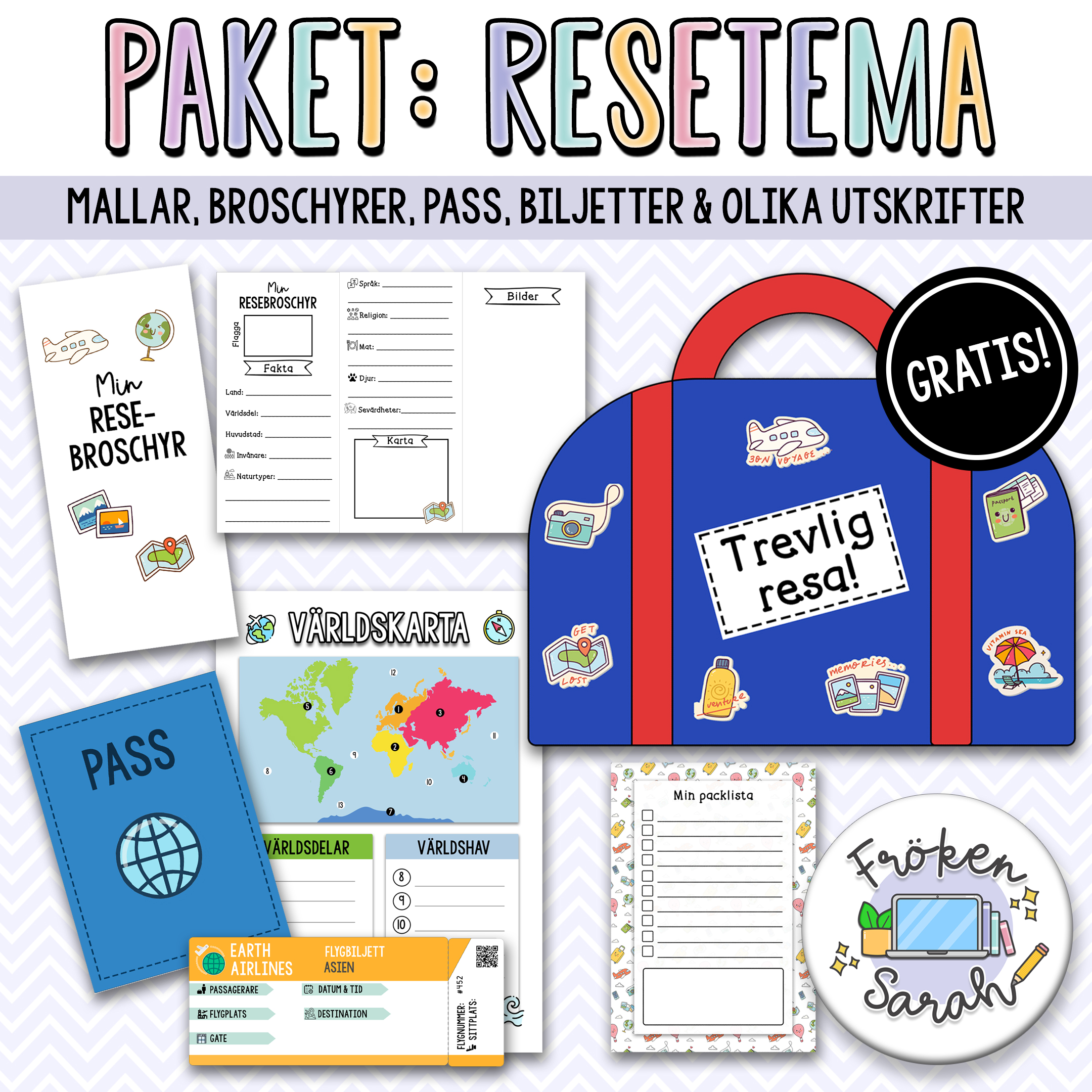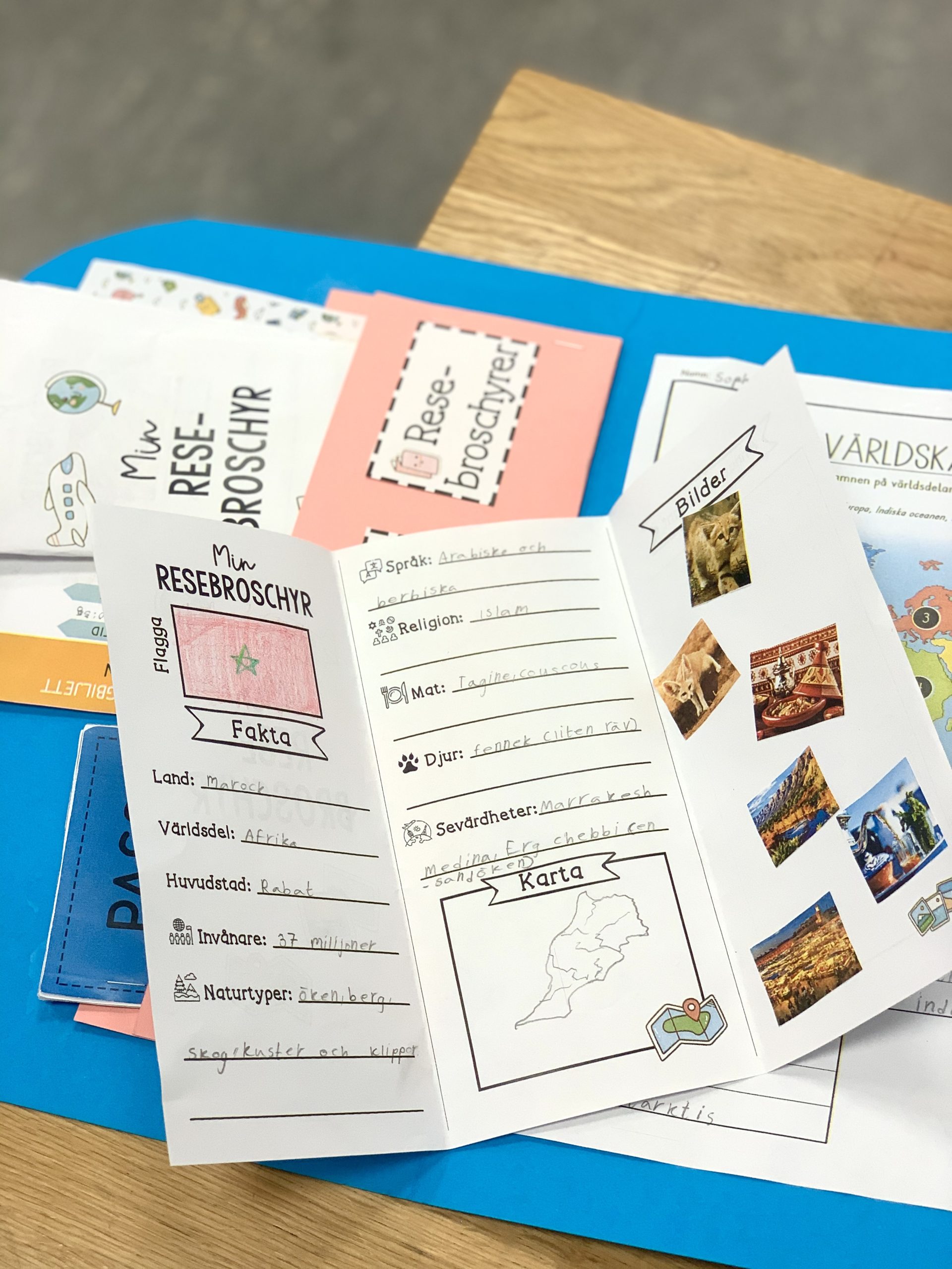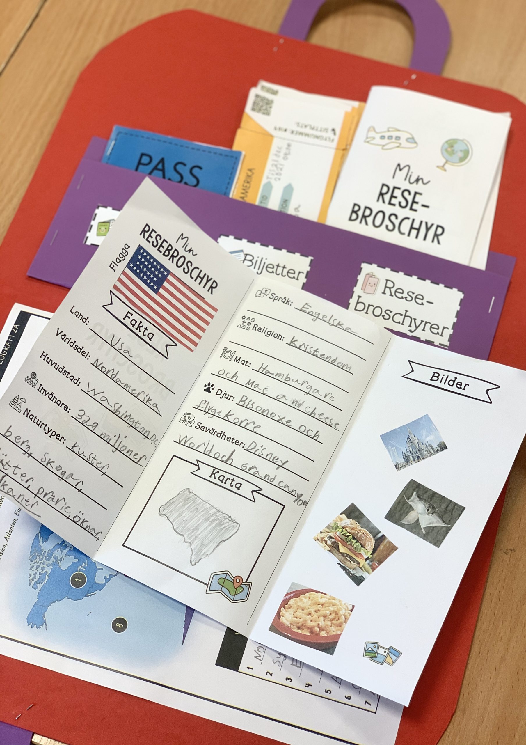 egna resebroschyrer som eleverna gör med fakta om olika länder. På min instagram @froken_sarahs_material finns det även videor som visar hur resväskan ser ut.