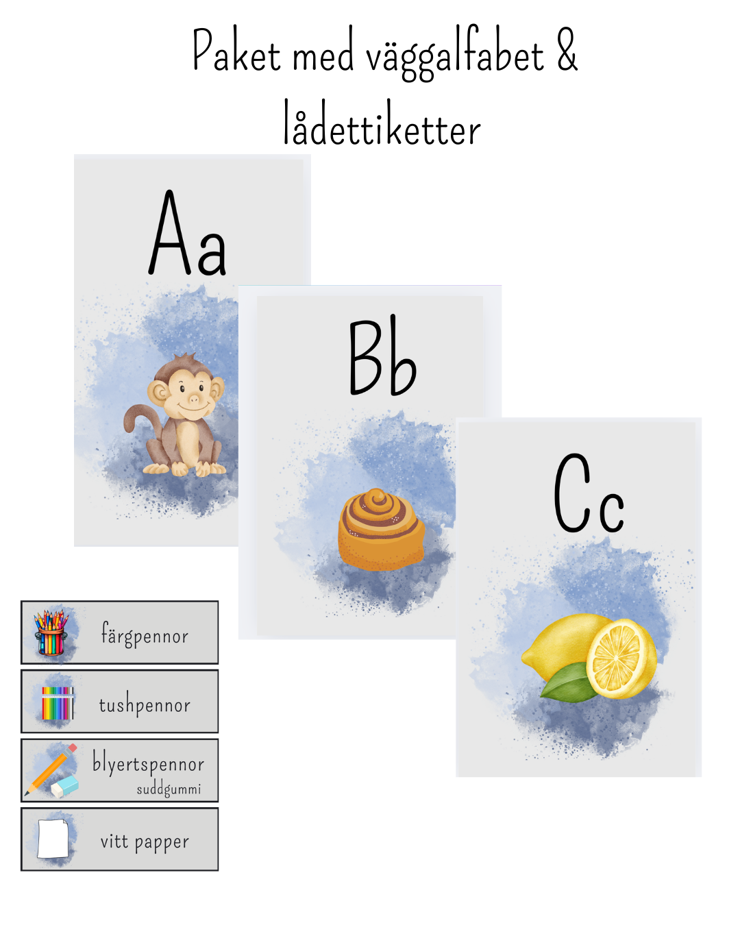 Paket med väggalfabet och lådetiketter – allt i ett, matchat och klart 🙂