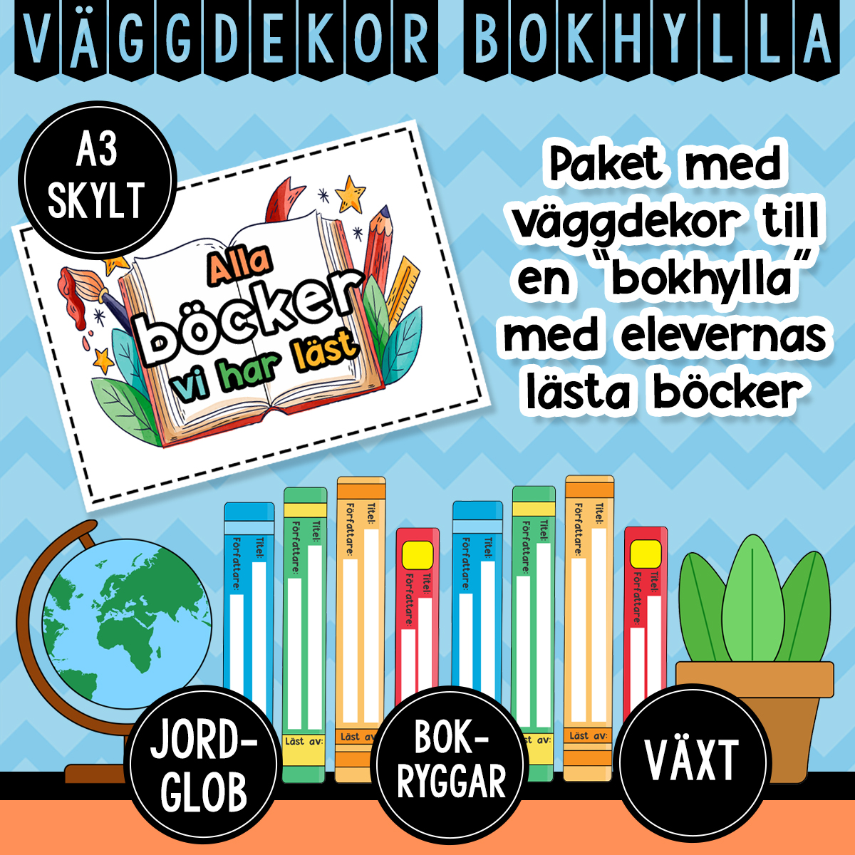 - En A3-poster med texten ”Alla böcker vi har läst”.