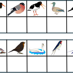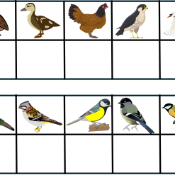 Materialet är ett material där barnet ska para ihop bilder som är likadana. Temat är fåglar.