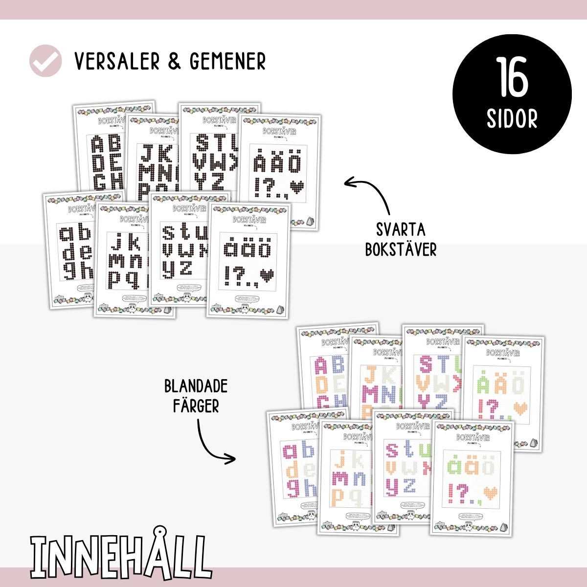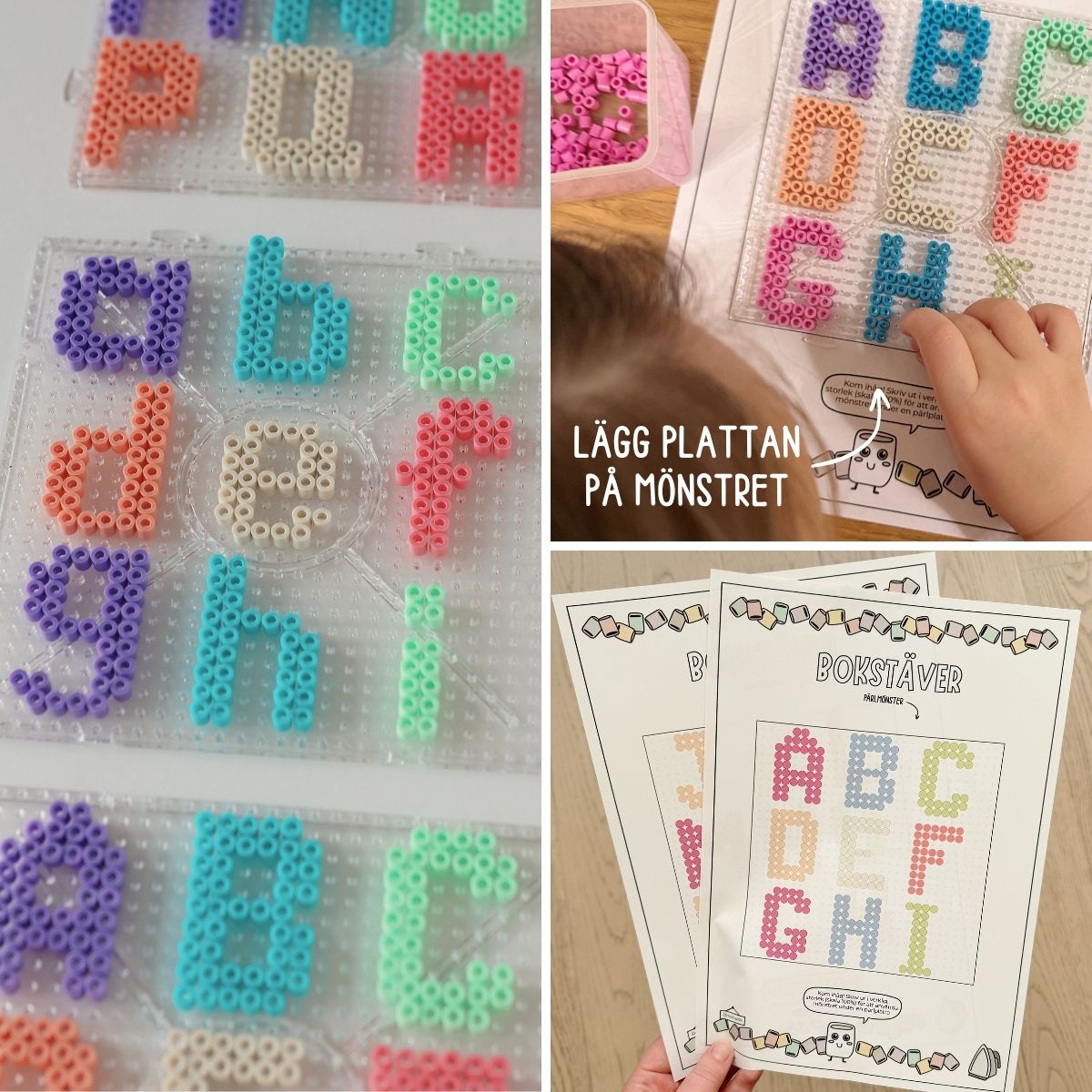 Pärla alfabetet och gör bokstavsträningen både kreativ och rolig! Med dessa tydliga mönster kan barnen pärla versaler, gemener och vanliga tecken. Öva sedan på att skapa namn, skyltar, små budskap eller bara träna bokstäver på ett lustfyllt sätt.