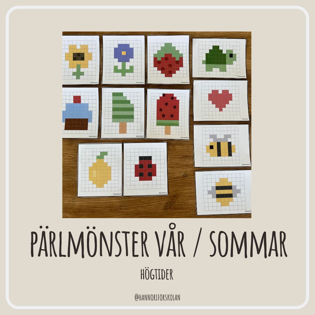 Pärlmönster vår / sommar – Med det här materialet rekommenderar vi att ni använder en kvadratisk pärlplatta. Räkna och följ mönstret.