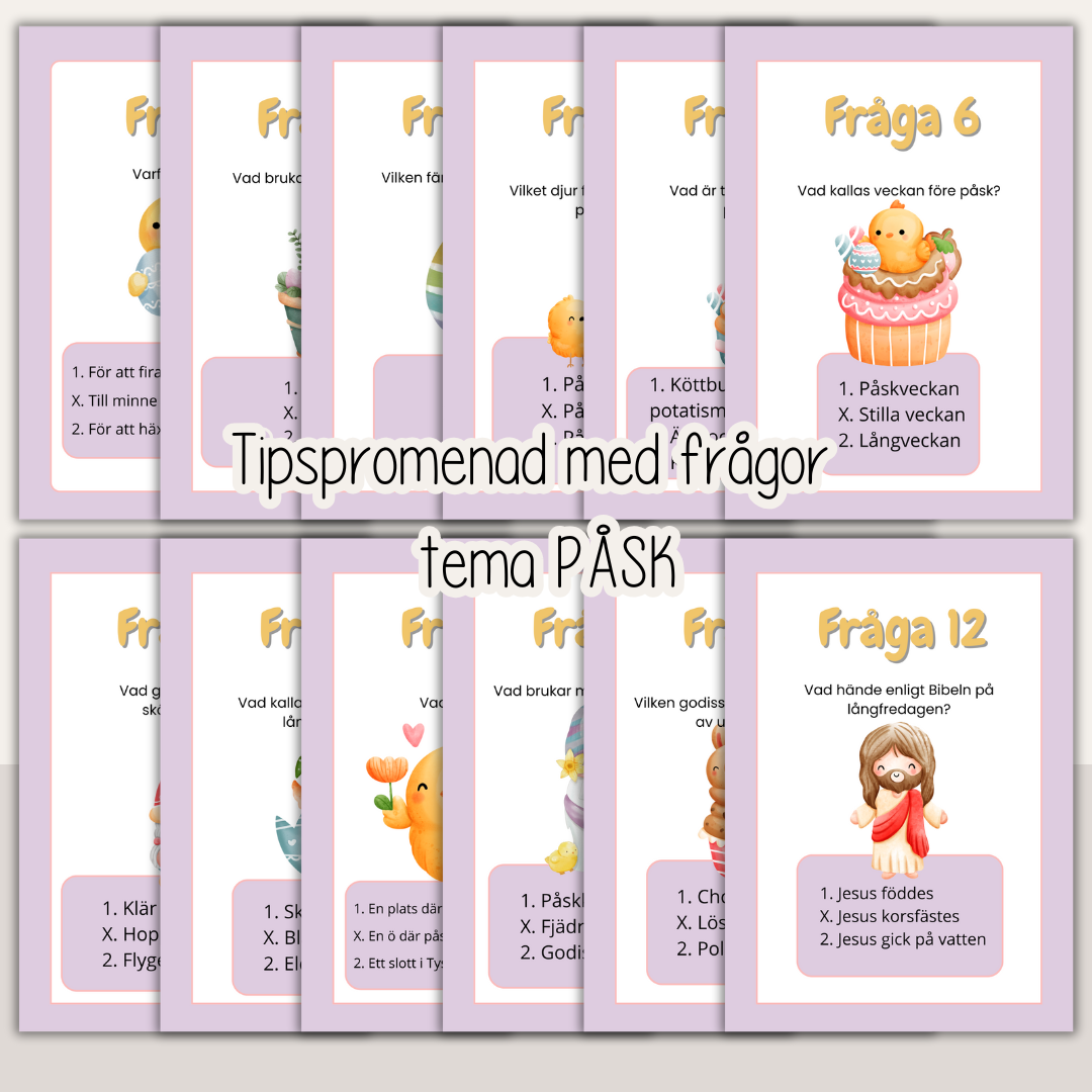Tipspromenad med 12 frågor om påsken.