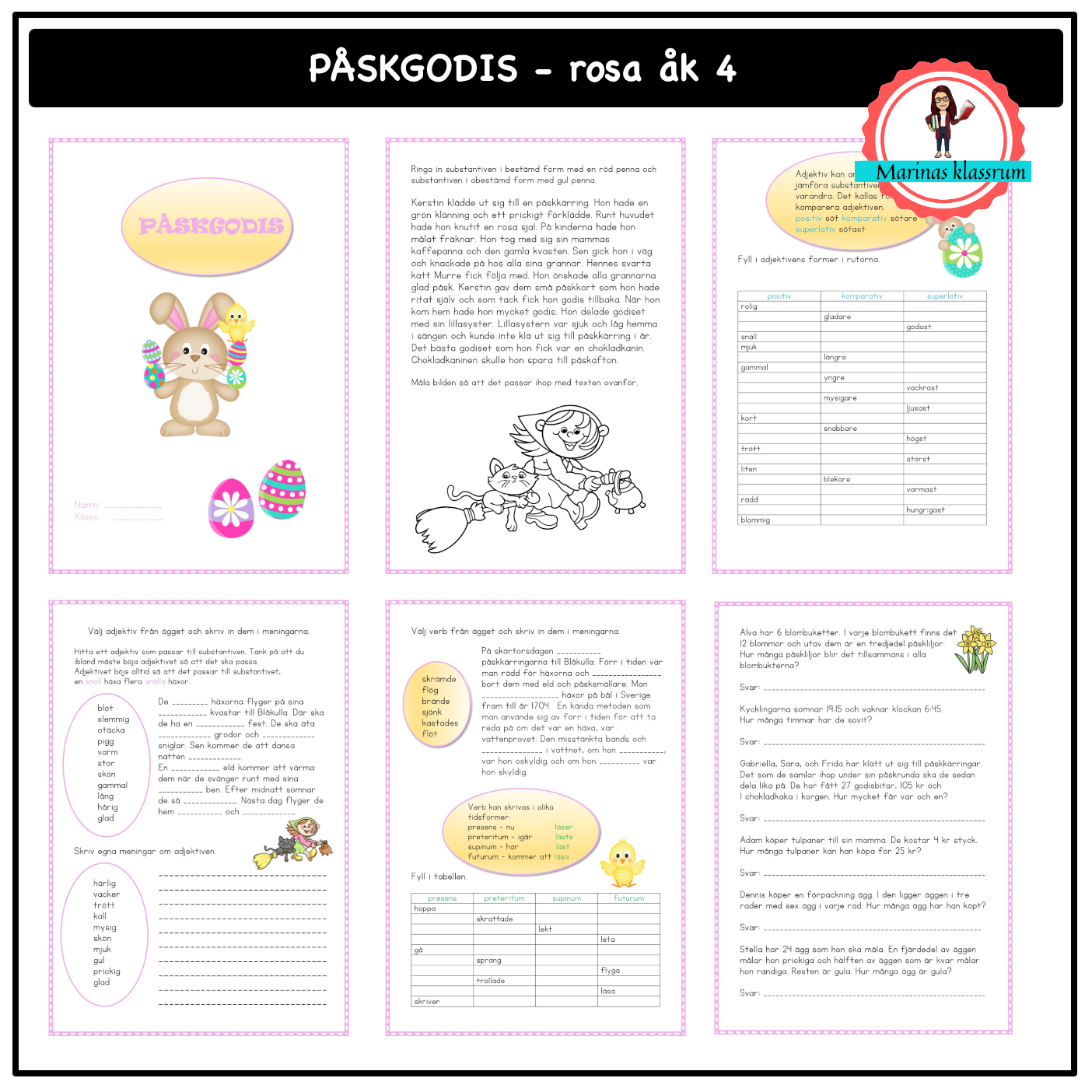 Ett påskhäfte med kunskaps-godis där eleverna får träna på grammatiska övningar i svenska.