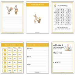 Påskpaket med många roliga och lärorika svenska uppgifter! Innehåller fakta om påsken med tillhörande frågor, stavningsövningar, ordgömma, tokiga meningar och annat kul.