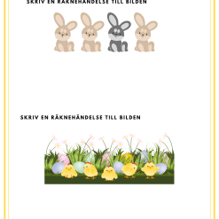 Arbetshäfte med olika uppgifter i ma/sv/eng med påsk-tema. Totalt 16 sidor arbete. Passar åk 2-3 (se bilder).