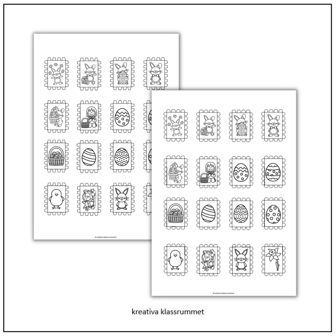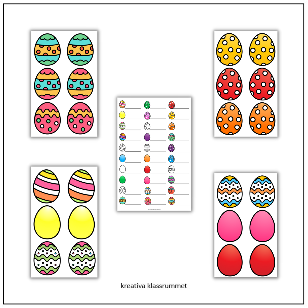 Förslag: Utveckla leken genom att skriva ett ord på baksidan av äggen som sitter uppsatta. Eleven berättar vad som står när hen lämnar tillbaka ägget.