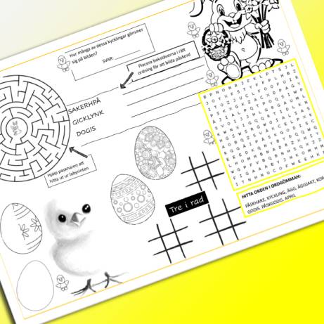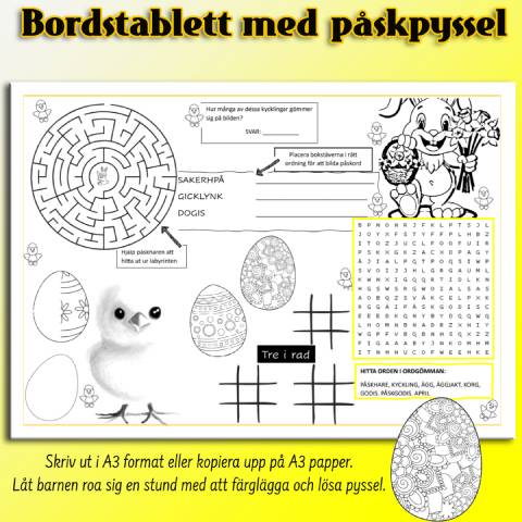 En fin stor bordstablett med påskpyssel för barnen. Fint till barnens påskfest eller som aktivitet till barnen inför påsk.
