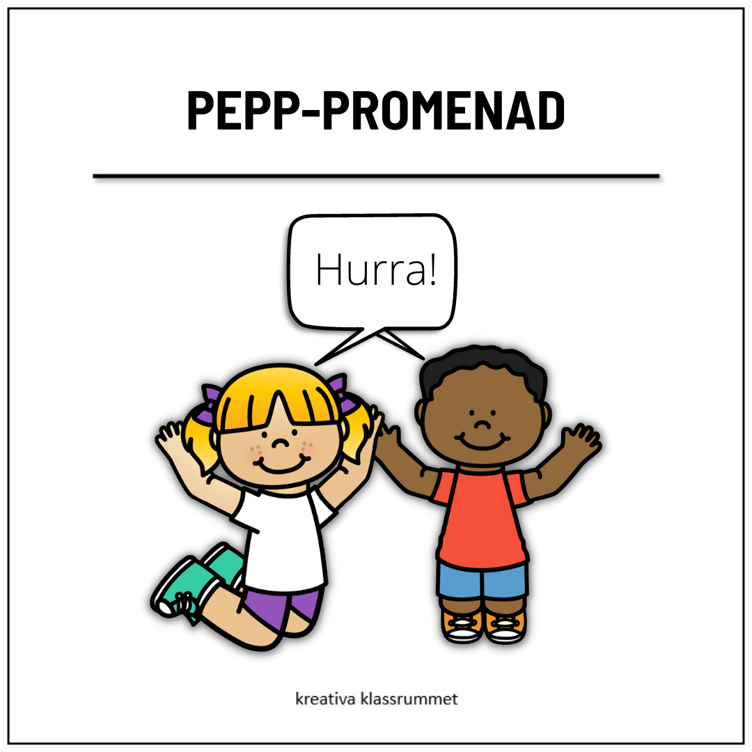 Pepp-promenad: Promenaden är tänkt att ge eleverna pepp till sig själva och till sin kompis. Passar till Alla hjärtans dag lika bra som till ALLA andra dagar. Pepp och kärlek kan vi inte få för mycket av! Låt eleverna gå i par, smågrupper.