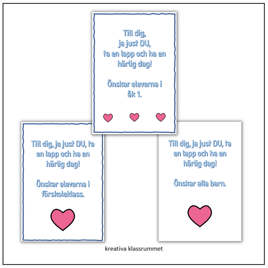 Pepp-skylt: En skylt att sätta upp bredvid er pepp-burk. En burk att lägga pepp-lappar som eleverna skrivit.