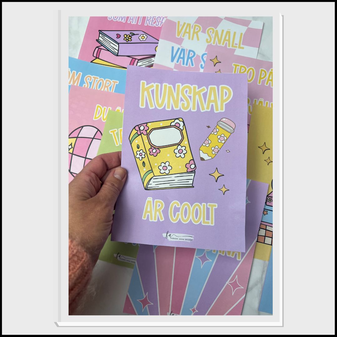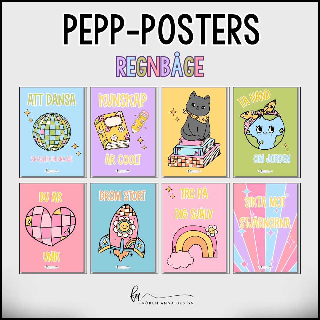 I detta set ingår 5 pepp-posters att skriva ut och dekorera klass- eller barnrummet med. Kan skrivas ut i A5, A4 Eller A3.