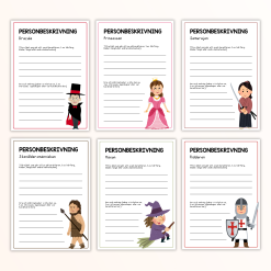 Träna på att skriva personbeskrivningar! I detta paket ingår 12 olika karaktärer som eleverna ska beskriva. Alla karaktärer fås både som ett vanligt arbetsblad, samt som ett vikbart arbetsblad för att ytterligare synliggöra vad som är yttre och inre aspekter.
