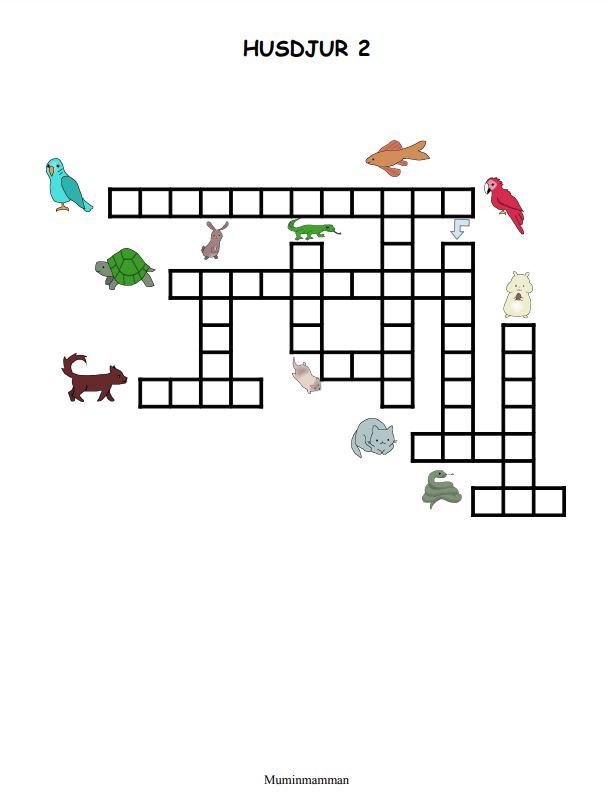 Korsord med Husdjur, ett på svenska och ett på engelska