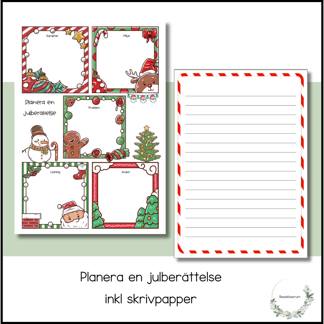 Planera julskrivandet i denna femfältare där eleverna skriver stödord.